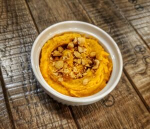 (sweet potato, vegan butter, oat milk, sage, garlic, peanuts)