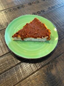 (crust: almond, oat flakes, sesame; filling: onion, garlic, leek, cashew, tofu, parsley, olive oil)